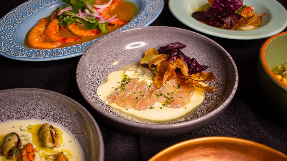No salão, o público encontra um buffet diversificado. Entre os pratos frios estão ceviches variados, mariscos, sardinha escabeche, saladas especiais, kani kama com molho rosé, atum com batata, tabule de quinoa, carpaccios, cogumelos e massas frias.