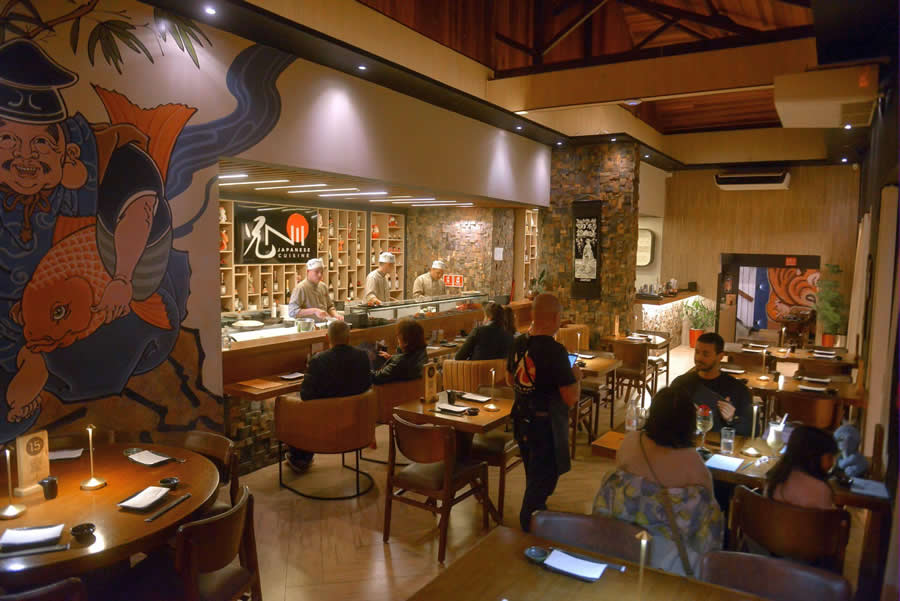 O ambiente do restaurante é acolhedor, com arquitetura contemporânea e espaço para eventos e comemorações, incluindo teto retrátil para ocasiões especiais. A proposta da casa é transformar cada prato em uma verdadeira obra de arte sensorial, proporcionando novas texturas, cores e sabores aos amantes da gastronomia japonesa.