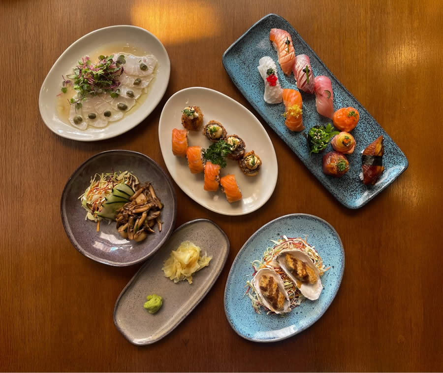 O chef Fabio Seiji conduz o tradicional Omakase, guiando os clientes por preparos personalizados, que podem mesclar ingredientes do Japão com influências internacionais, como o Tiraditos de peixe branco peruano, o Tempurá de Milho e o Missoshiro ao Vôngole.