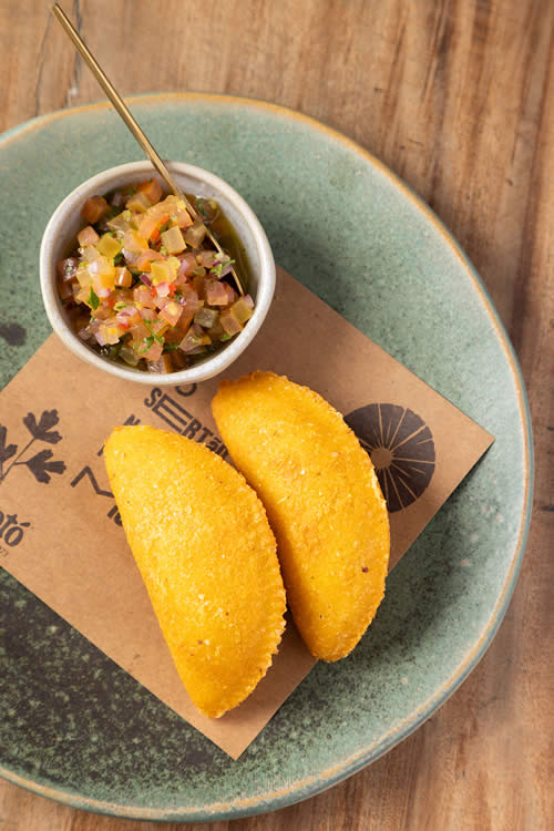 Pastel de Angu Severino – Duas unidades (R$ 26,90). Receita criada com o chef Rodrigo Oliveira (@mocotorestaurante) e recheio de carne de sol, requeijão rapa de tacho e vinagrete especial.