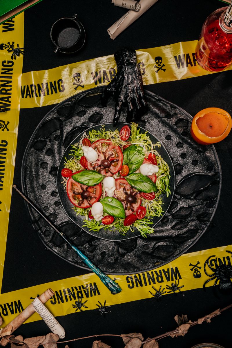 Além das opções de Halloween, o restaurante oferece pratos clássicos da casa: