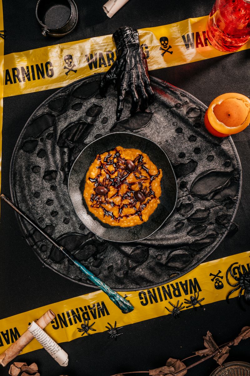Slimer (R$ 59,90): Risoto de abóbora cabotiá com redução de balsâmico e azeitona preta