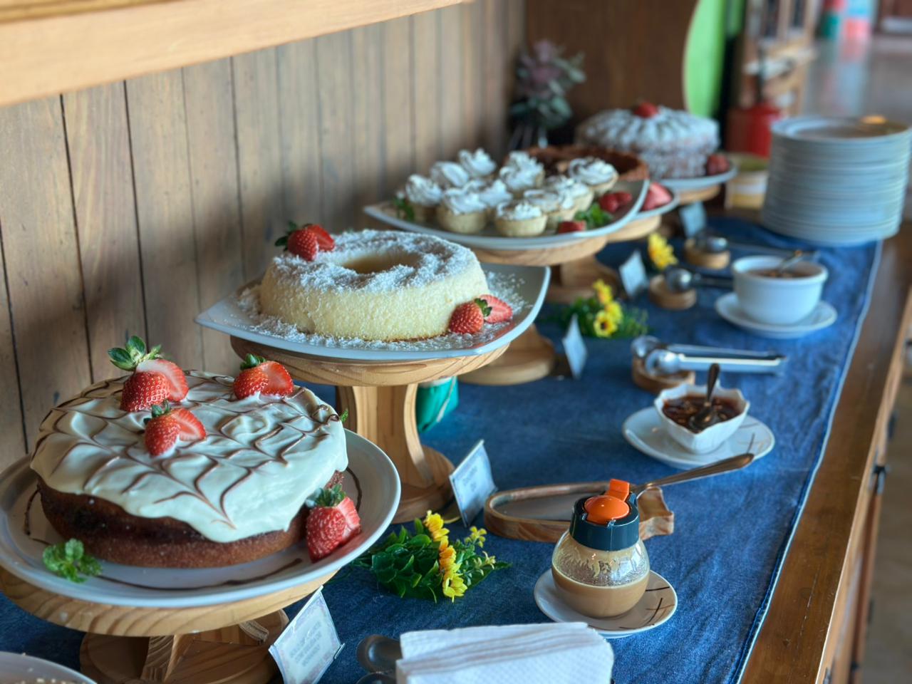 E um dos cafés da manhã mais completos do Circuito das Águas Paulista, com mais de 55 itens artesanais produzidos localmente.
