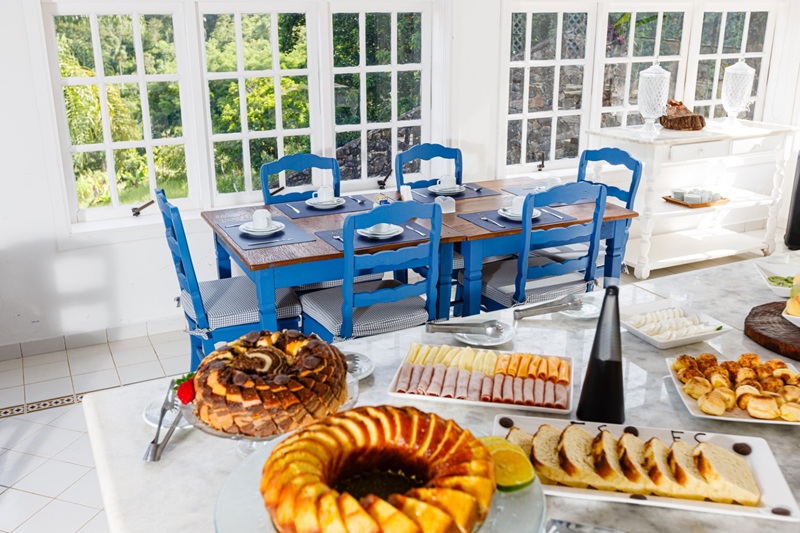 O cardápio valoriza a culinária brasileira com um toque sofisticado, acompanhado por uma carta de vinhos selecionada, proporcionando refeições que se tornam parte essencial da hospedagem.