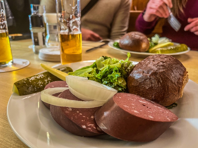 Kölsche Kaviar – outra pegadinha linguística: nada de caviar. Aqui, trata-se de uma simples e saborosa salsicha de sangue, macia, aromática e levemente defumada, servida com pão fresco, salada, cebola crua e picles.