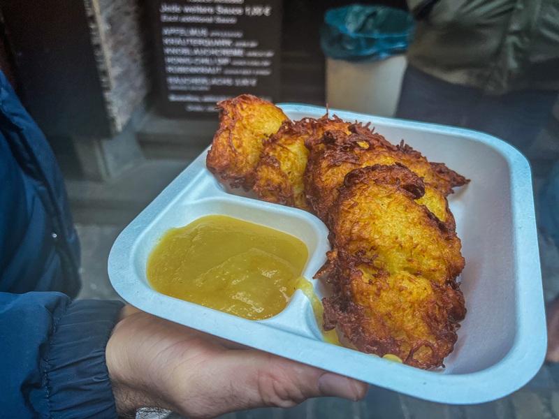 Reibekuchen (Rievkooche no dialeto local) – panquecas de batata fritas bem crocantes, servidas tradicionalmente com purê de maçã. Uma verdadeira comfort food da cidade.