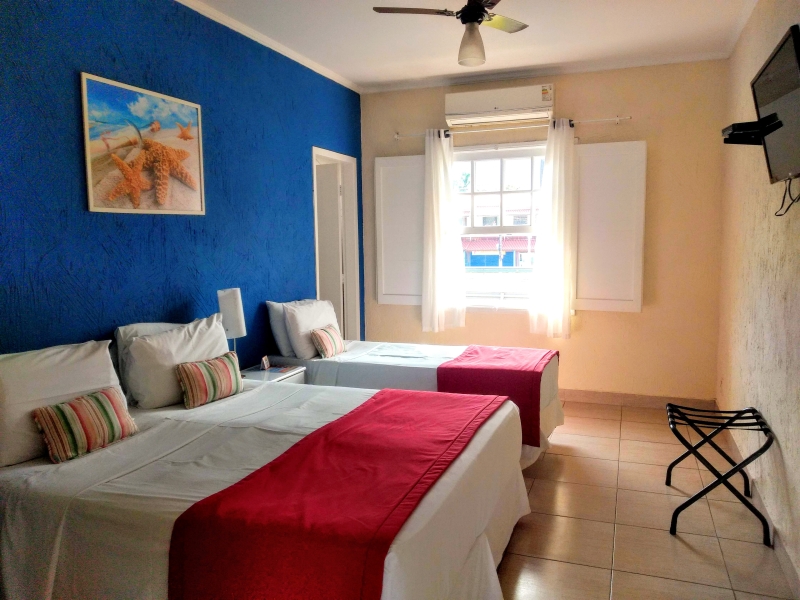 A pousada oferece apartamentos Standard para 2, 3, 4, 6 e até 7 pessoas, acomodando desde casais até famílias grandes. Os quartos são aconchegantes e bem equipados, perfeitos para aquele descanso depois de um dia de praia.