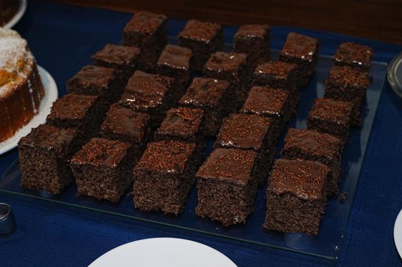 - o bolo de chocolate, fofinho e úmido, com aquela calda generosa que faz toda a diferença.
