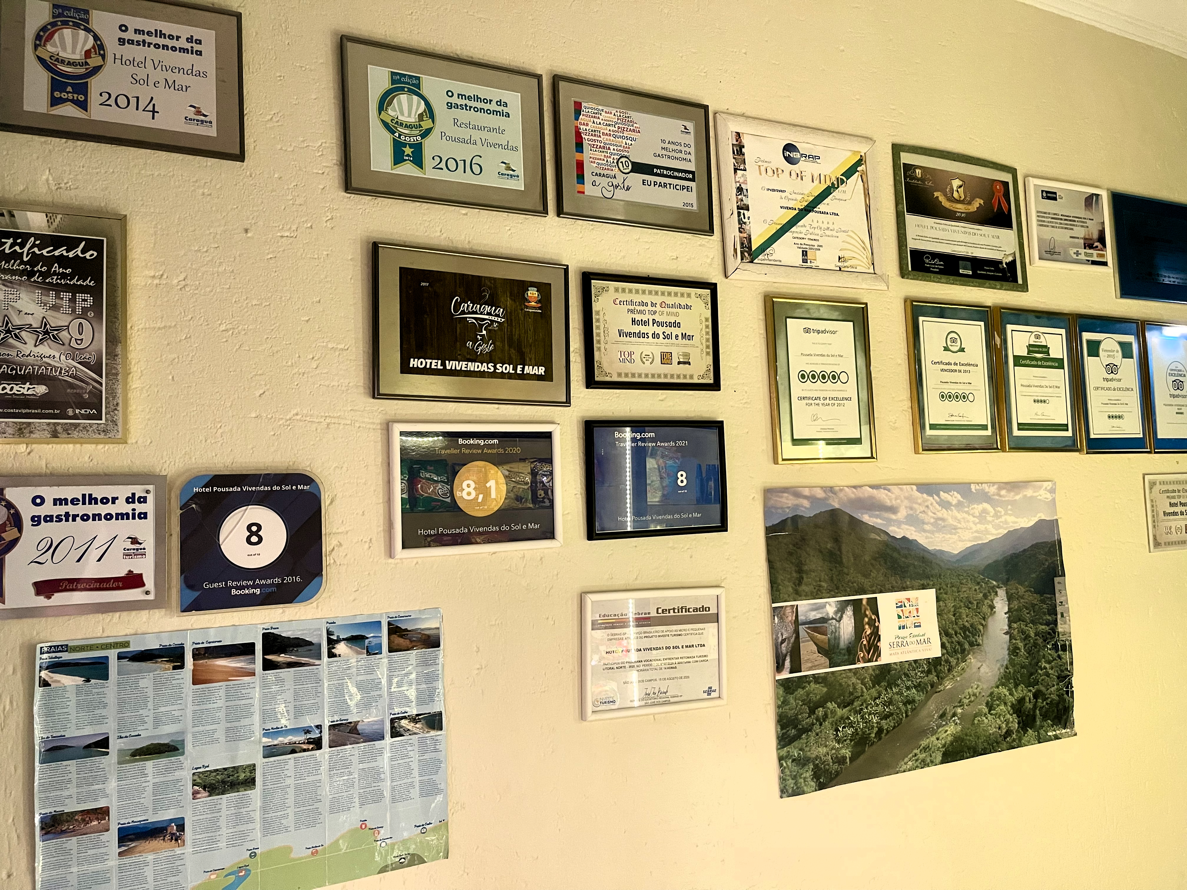 Na recepção, uma parede repleta de prêmios reafirma o mérito de um trabalho construído com dedicação.
