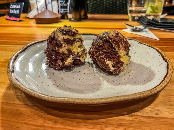 Já o Baleia Mousse (R$ 48,00), feito com três tipos de chocolate, é clássico, bem executado e perfeito para quem prefere uma finalização mais direta e indulgente. Ambas podem ser tranquilamente compartilhadas.