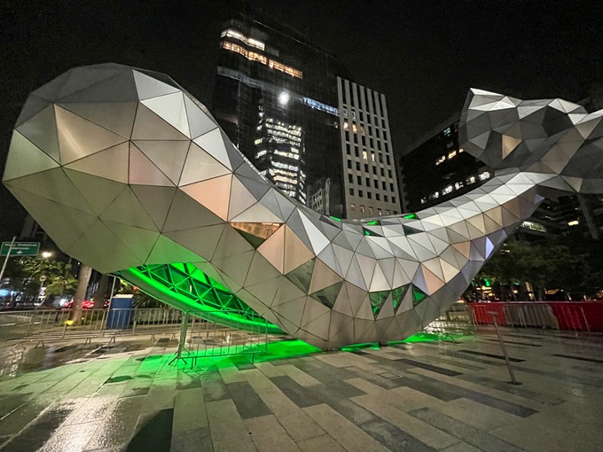 A escultura de baleia que dá nome a casa