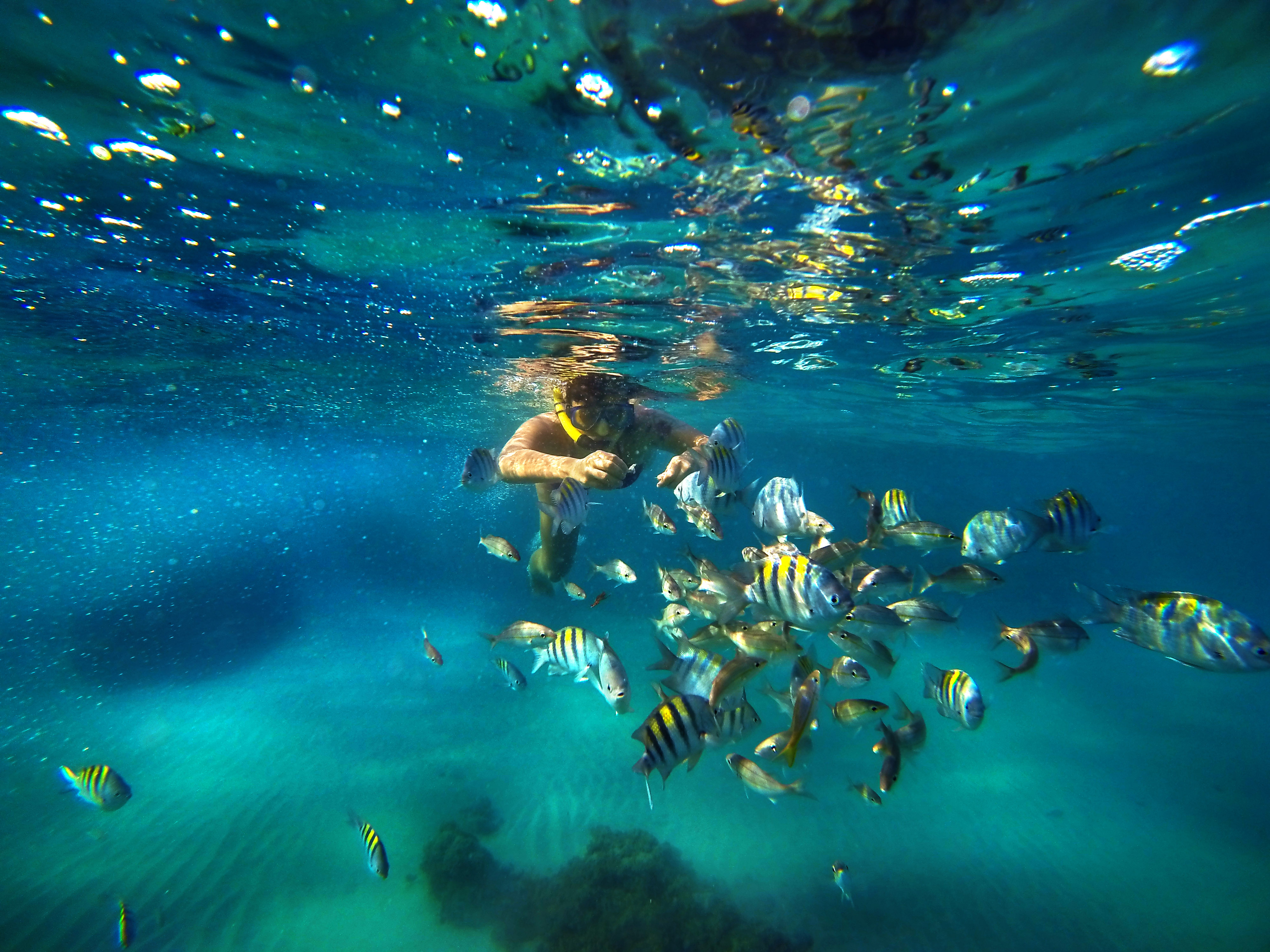 Águas cristalinas com corais de fogo e fauna rica, acessíveis até para quem não tem experiência em mergulho.